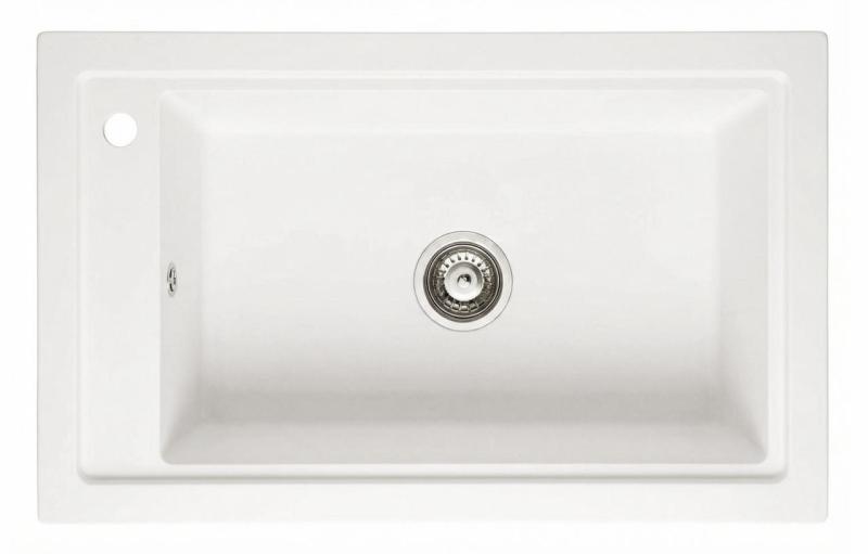 Graniteland Magra Granieten Witte Spoelbak opbouw 686 x 427 mm met kraangatbank en RVS Plug 1208970614