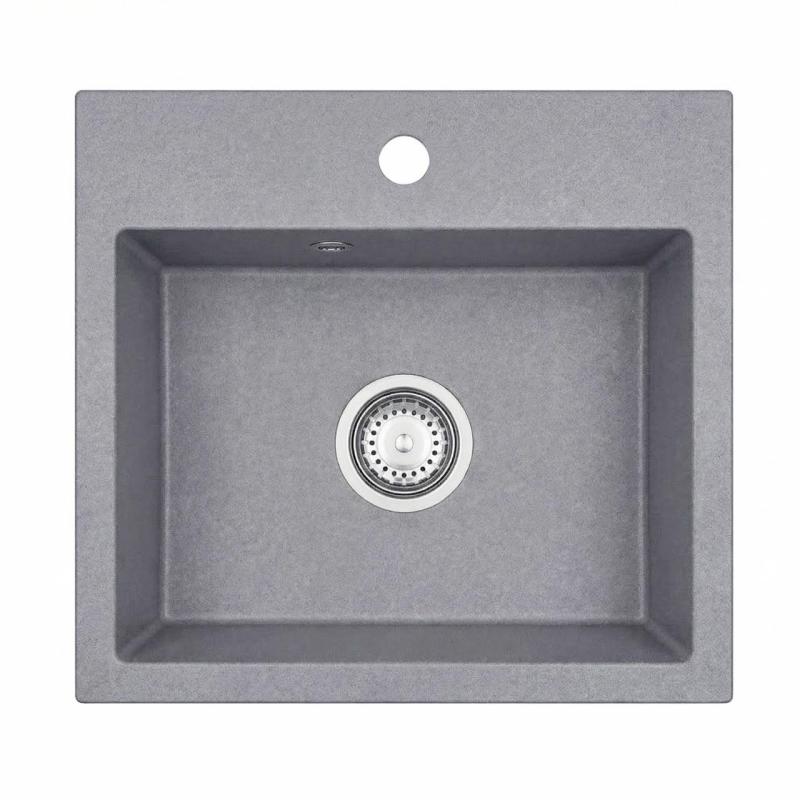 Graniteland Nera Granieten Spoelbak 45x42 cm Grijze Opbouw met Kraangatbank en RVS Plug 1208971436