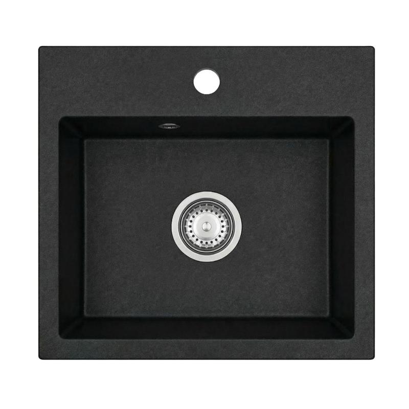 Graniteland Nera Granieten Spoelbak 45x42 cm Zwart Opbouw met Kraangatbank en RVS Plug 1208969985