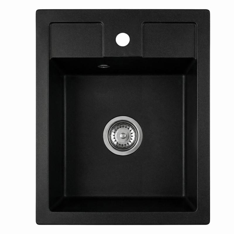 Graniteland Prest Granieten zwarte spoelbak Tapwing met kraangatbank opbouw 400x500mm met RVS Plug 1208971421