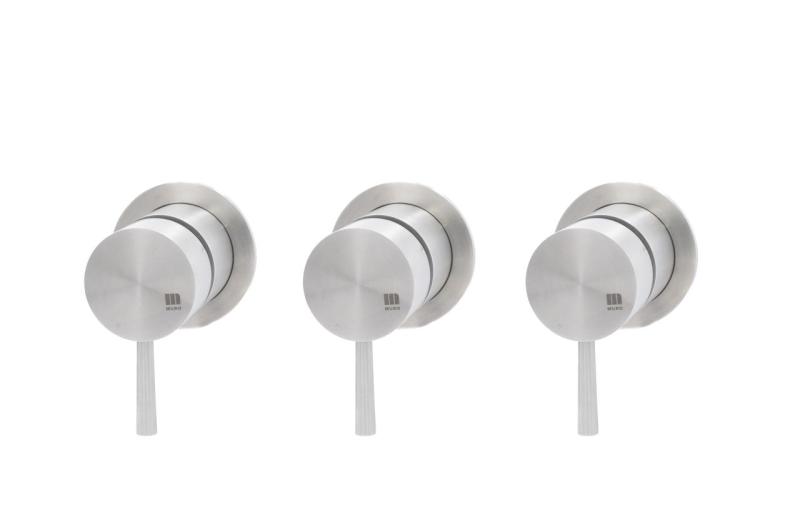 Dankzij de twee afzonderlijke stopkranen bedien je meerdere wateruitgangen onafhankelijk van elkaar, zoals een hoofddouche en handdouche. Dit biedt maximale controle over comfort en watergebruik. De bediening gebeurt via elegante hendelgrepen, terwijl de meegeleverde afdekrozetten zorgen voor een strakke en naadloze wandafwerking.