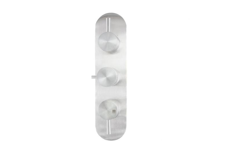 Met twee afzonderlijke stopkranen kun je de aangesloten wateruitgangen onafhankelijk bedienen, zoals een hoofddouche en handdouche. Dit biedt optimale flexibiliteit en controle over comfort en waterverbruik. De bediening gebeurt via strakke hendelgrepen, terwijl de meegeleverde afdekrozetten zorgen voor een nette en minimalistische wandafwerking.